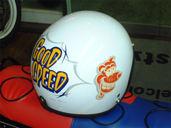 ヘルメットもバイクと同系統のカスタムペイントやピンストライプを施すことによって、バイクとのオリジナル感が出てきます。下記サンプルは全て約\13,000(消費税別)位。