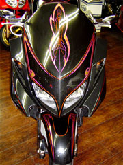 スクーターにピンストライプも最近では非常にメジャーなカスタマイズの手法。え?これがピンストライプなの?と思えるものまで様々なピンストライプの加工が出来ます。
