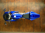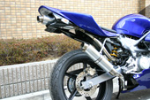 エッジをきかせたリヤカウルは完全なシングルシート仕様。テールアップマフラーを用いているため、前方からのエアダクトでマフラーの冷却効果を促しています。